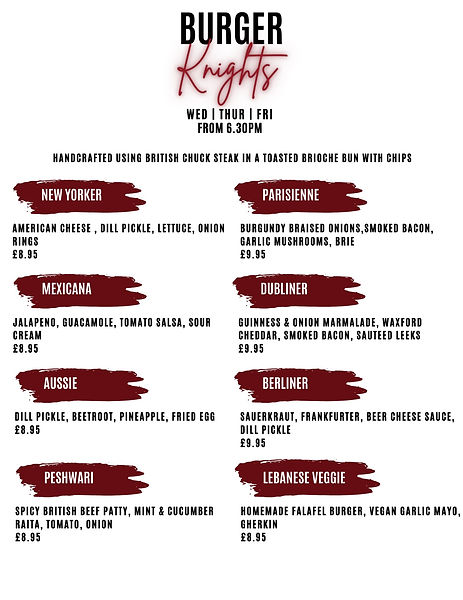 To celebrate the best of British beef this wednesday, Thursday and Friday will be burger nights here at the Knightley from 6:30pm - 9pm available to eat in or takeaway.
